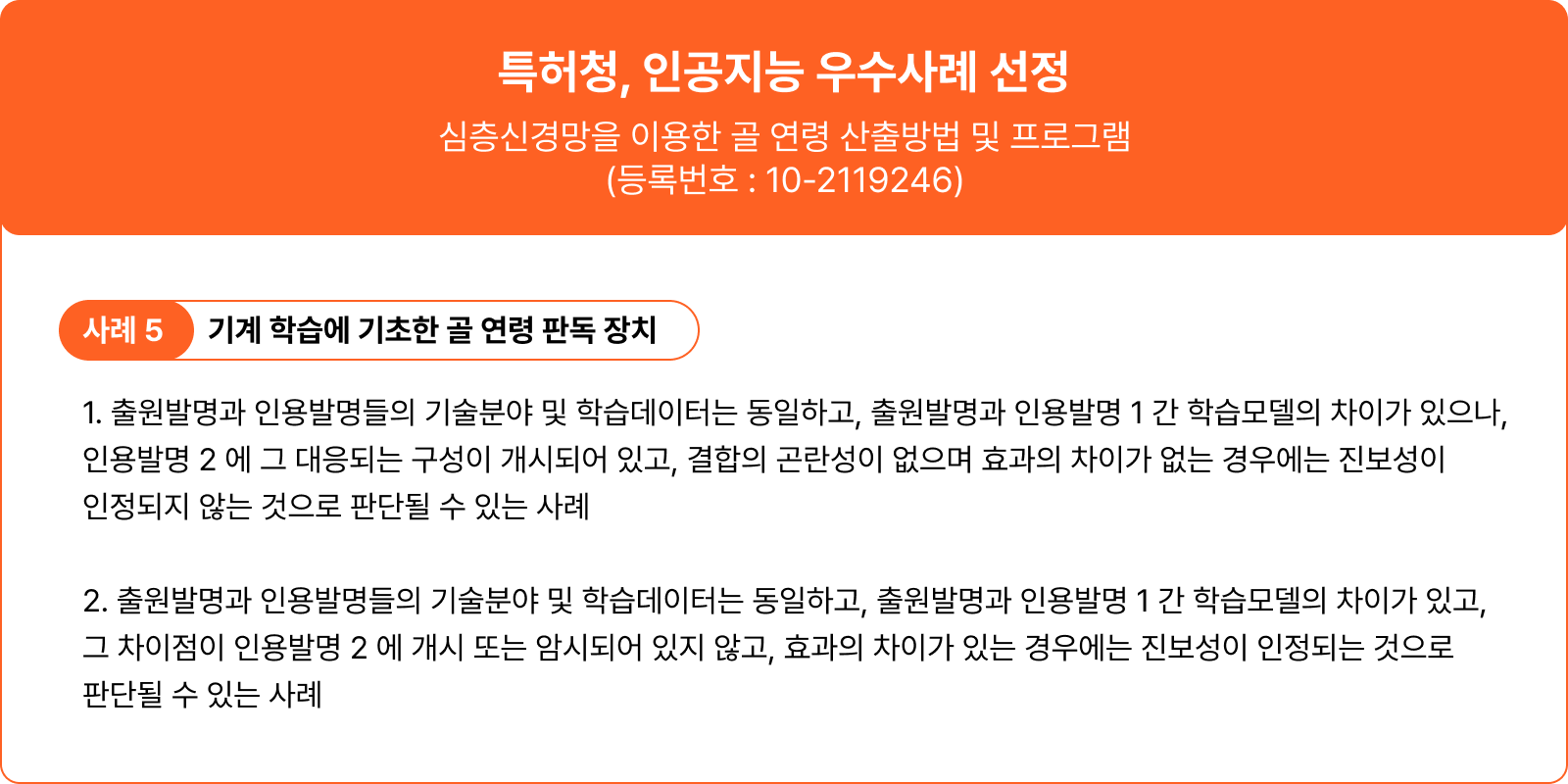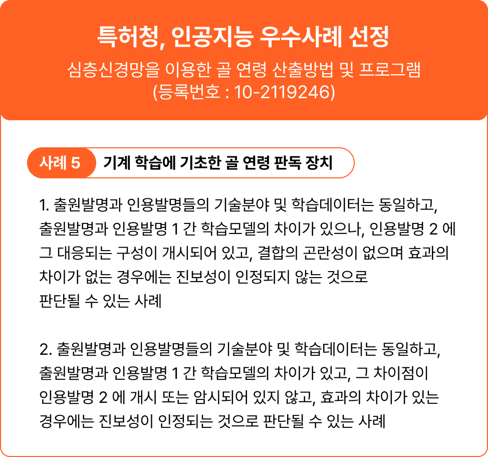 이 특허는 특허청에서 AI 특허의 진보성 판단과 관련된 주요 사례로 선정될 만큼 그 기술적 가치를 인정받았습니다.