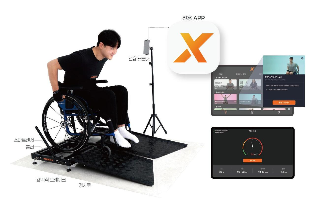 캥스터즈(대표 김강)는 이러한 ‘휠체어 사용자’들을 위한 휠체어 운동 플랫폼을 제공하는 스타트업이다. 이들은 스마트센서가 부착된 트레드밀(일종의 러닝머신)에서 장애인들이 신나게 운동할 수 있는 장치 ‘휠리엑스’를 개발했다. 휠체어 사용자는 자신이 평소 사용하던 휠체어를 휠리엑스 트레드밀 위에 올리고, 자신의 태블릿PC나 스마트폰을 연결한 후, 신나게 바퀴를 굴리면 된다. 태블릿PC에 설치된 휠리엑스 앱(App)은 휠체어 사용자의 각종 운동 데이터를 전송받아서 휠리게임과 연결한다. 자신의 휠체어가 마치 거대한 조이스틱이 되는 것이다. ‘휠리엑스’에는 셀프트레이닝 기능이 있어 최대속도 경쟁이나 ‘휠체어 마라톤’을 할 수 있다. 향후에는 태블릿PC 또는 VR 화면을 통해 휠체어 사용자들이 스타워즈 영화속에 등장하는 우주선의 조종사가 될 수도 있으며, 휠체어를 카누처럼 타고 망망대해를 노젓는 탐험가가 될 수 있게 할 예정이다. 휠체어 사용자들을 위한 ‘메타버스’의 시작이라고 볼 수 있다.