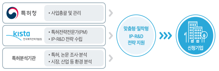 ○ 우리 기업에 지재권(IP)과 연구개발(R&D)을 연계한 맞춤형·밀착형 특허전략을 지원하여 핵심·원천 특허를 선점하고 강한 특허로 무장한 글로벌 기업 육성을 통해 국가 경쟁력 제고에 기여