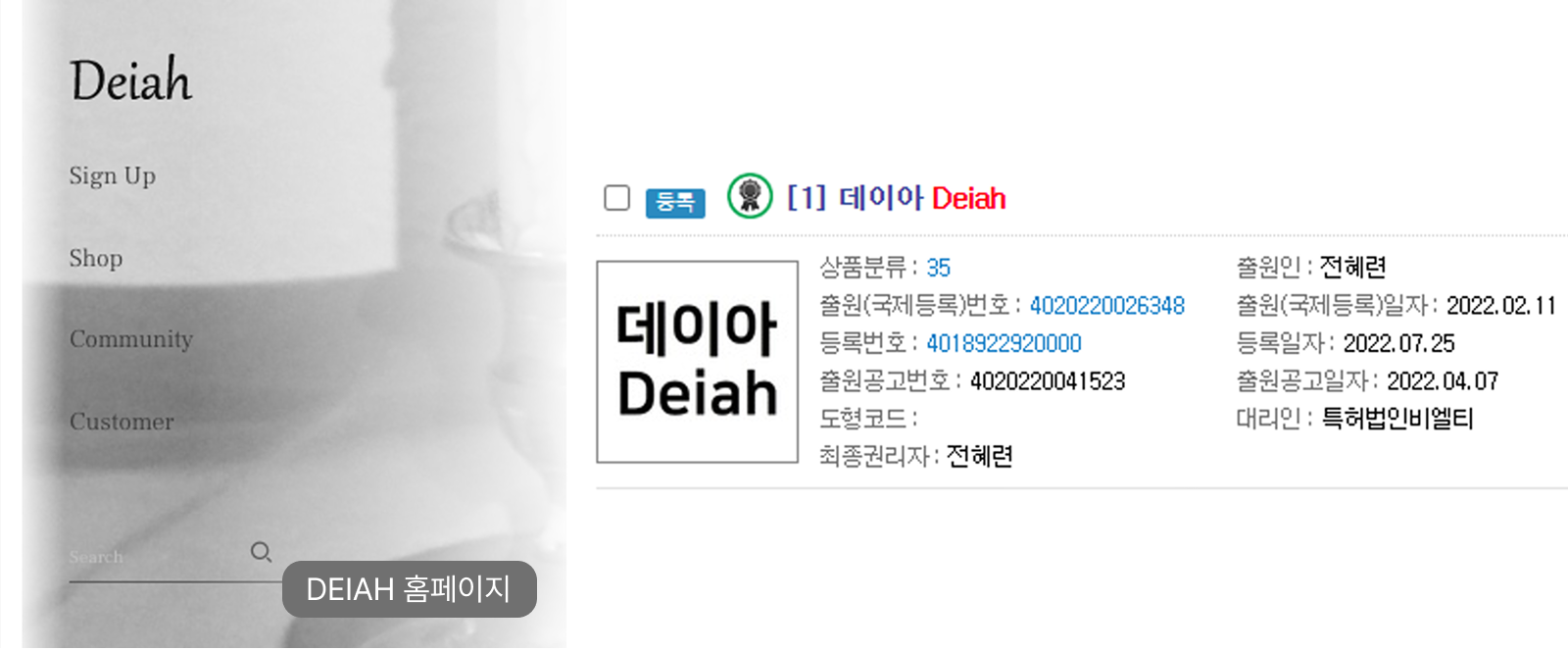 | DEIAH 특허청 등록현황 |