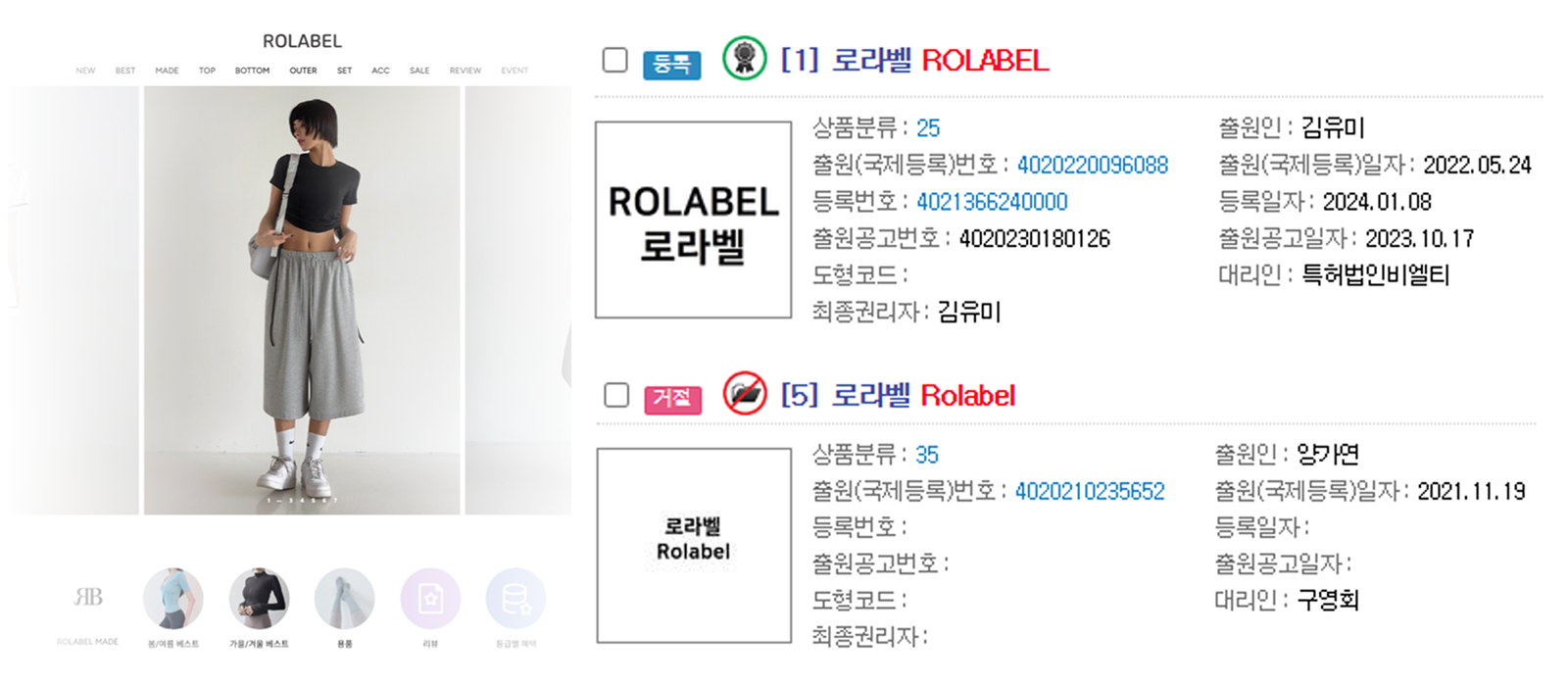 | ROLABEL 특허청 등록현황 |